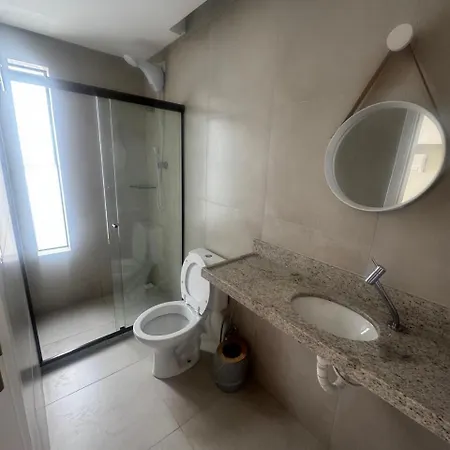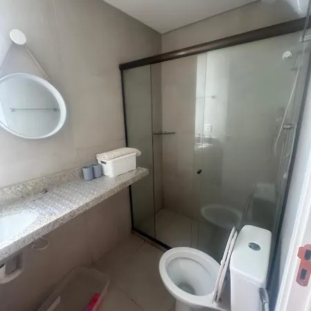 Casa Confortavel Na Praia Desejada Em Enseadinha includes a bathroom with a roll-in shower, a separate toilet, and a washing machine. Bathrooms also come with hairdryers and towels for your convenience.